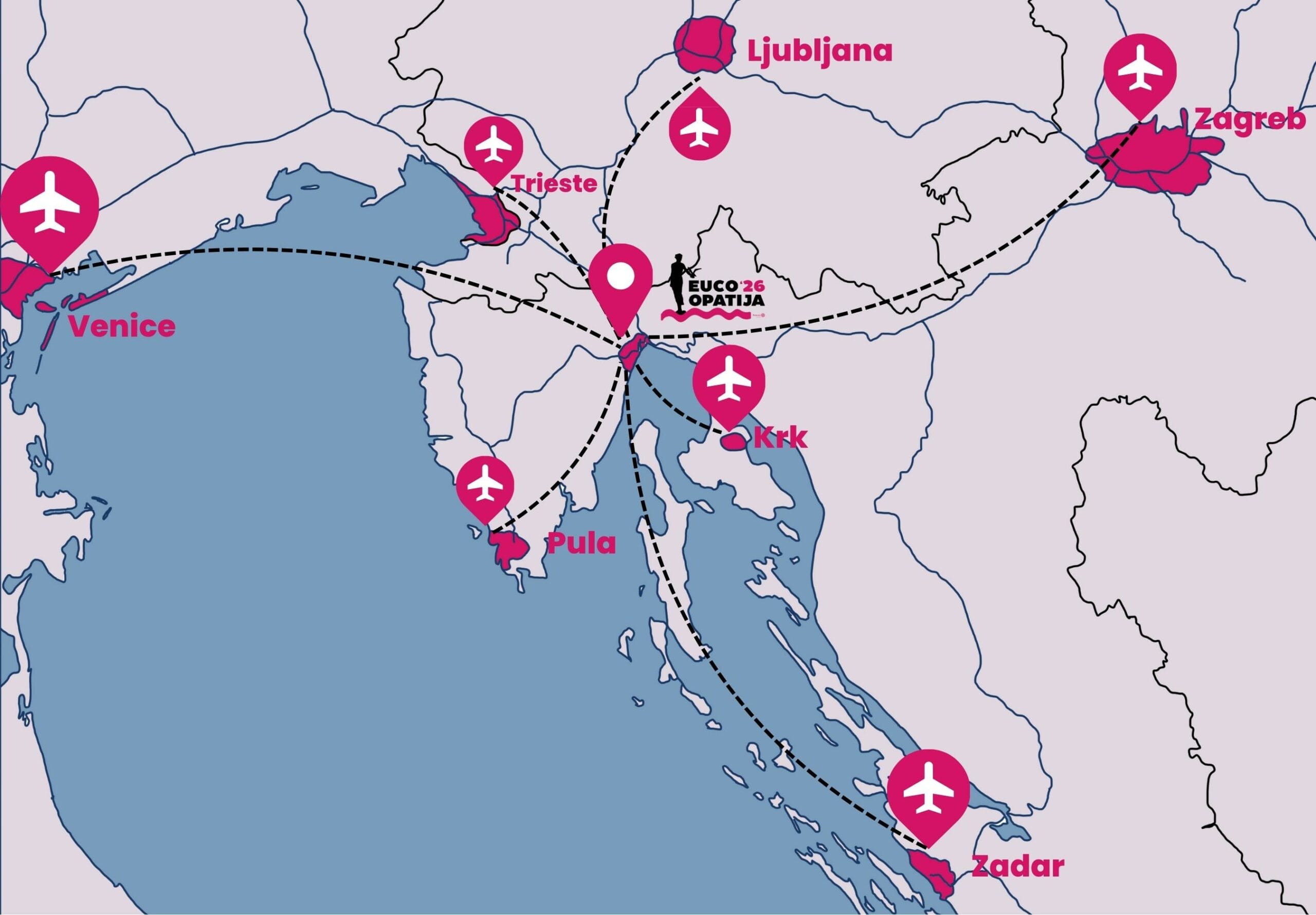 Several international and regional airports are just a short trip away, making EUCO 2026 well connected from all directions. Whether you’re flying in from a nearby capital or a coastal city, Opatija sits right at the crossroads of Central Europe and the Adriatic.🗺️